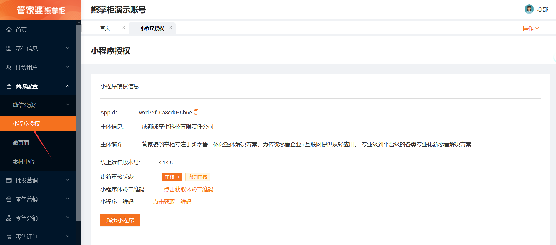 若之前已开通零售商城,需要在这里升级到最新版本