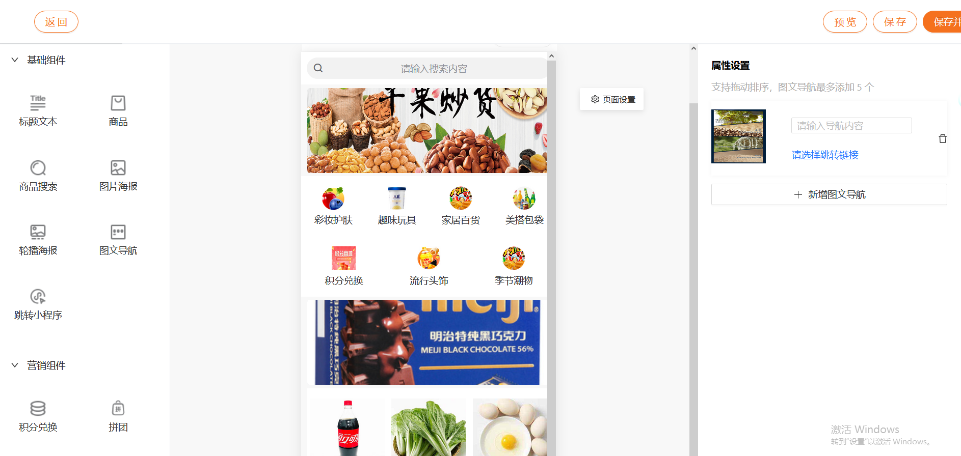 商城配置--微页面,装修商城首页样式,支持6种组件应用;