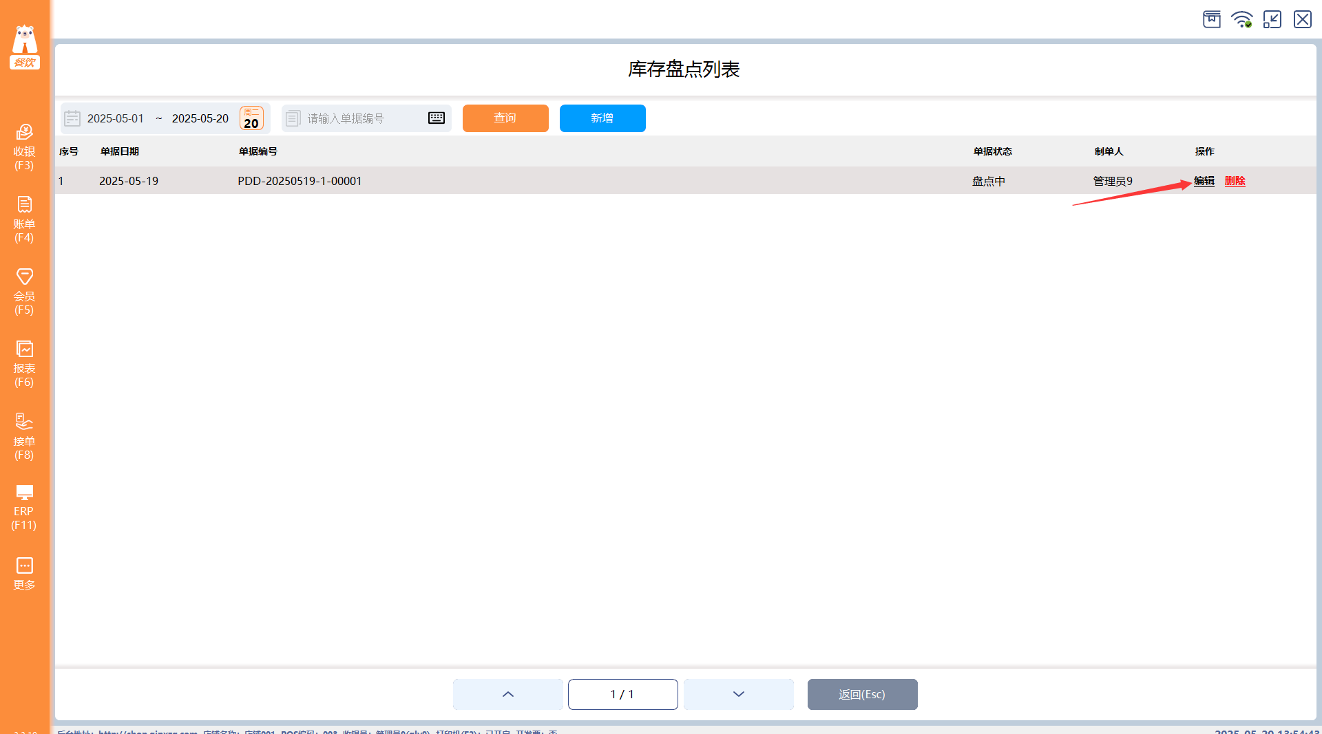 状态是盘点中的盘点单可以编辑修改。