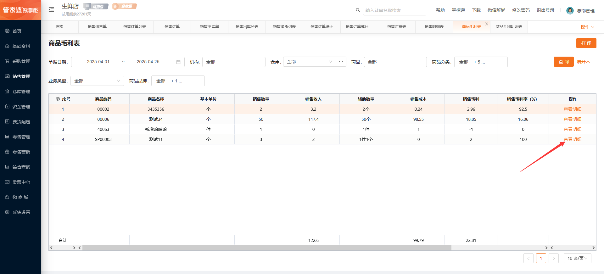 商品毛利表根据机构、仓库、商品、商品分类、业务类型、商品品牌条件筛选