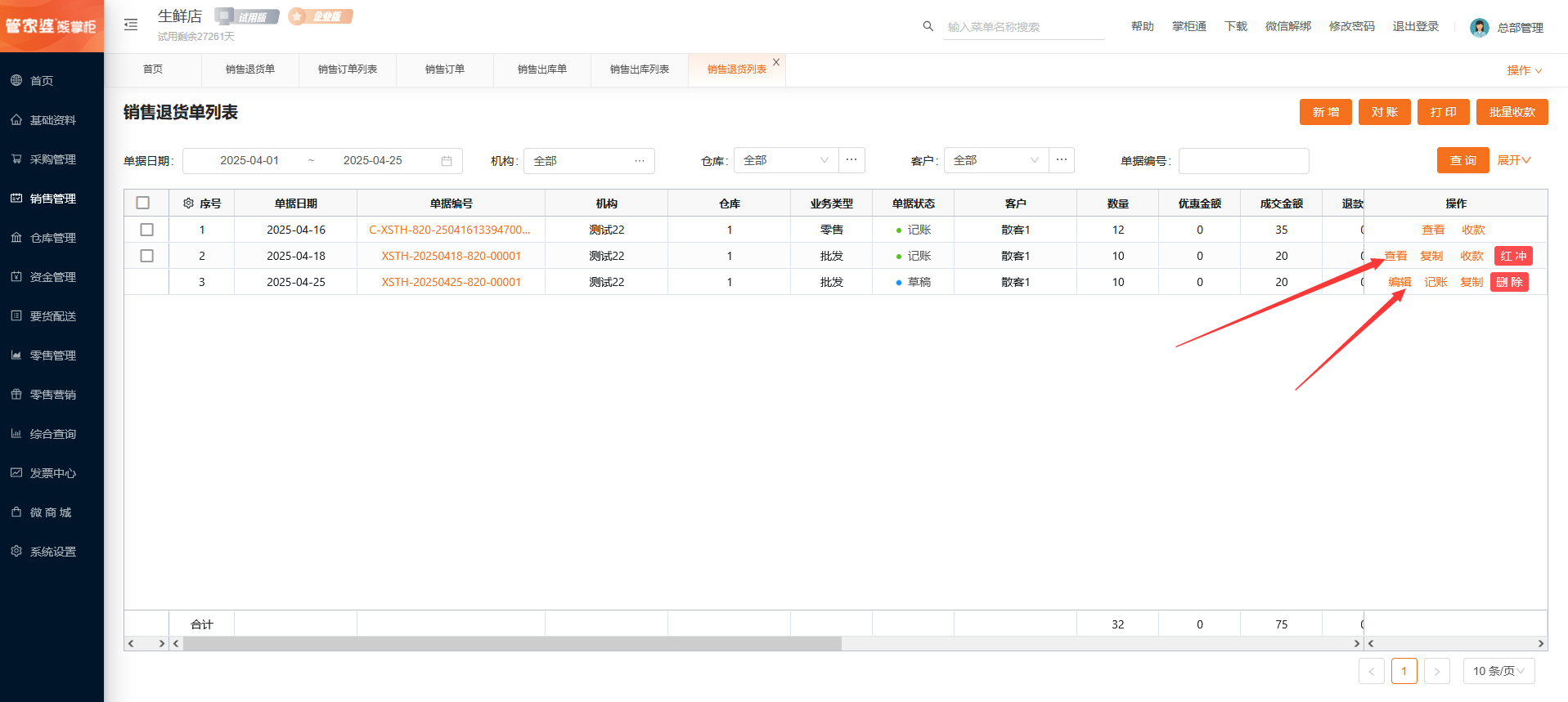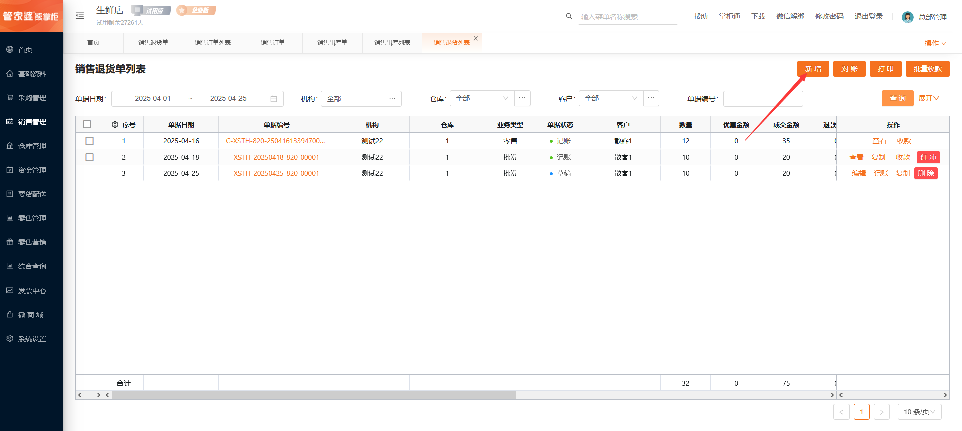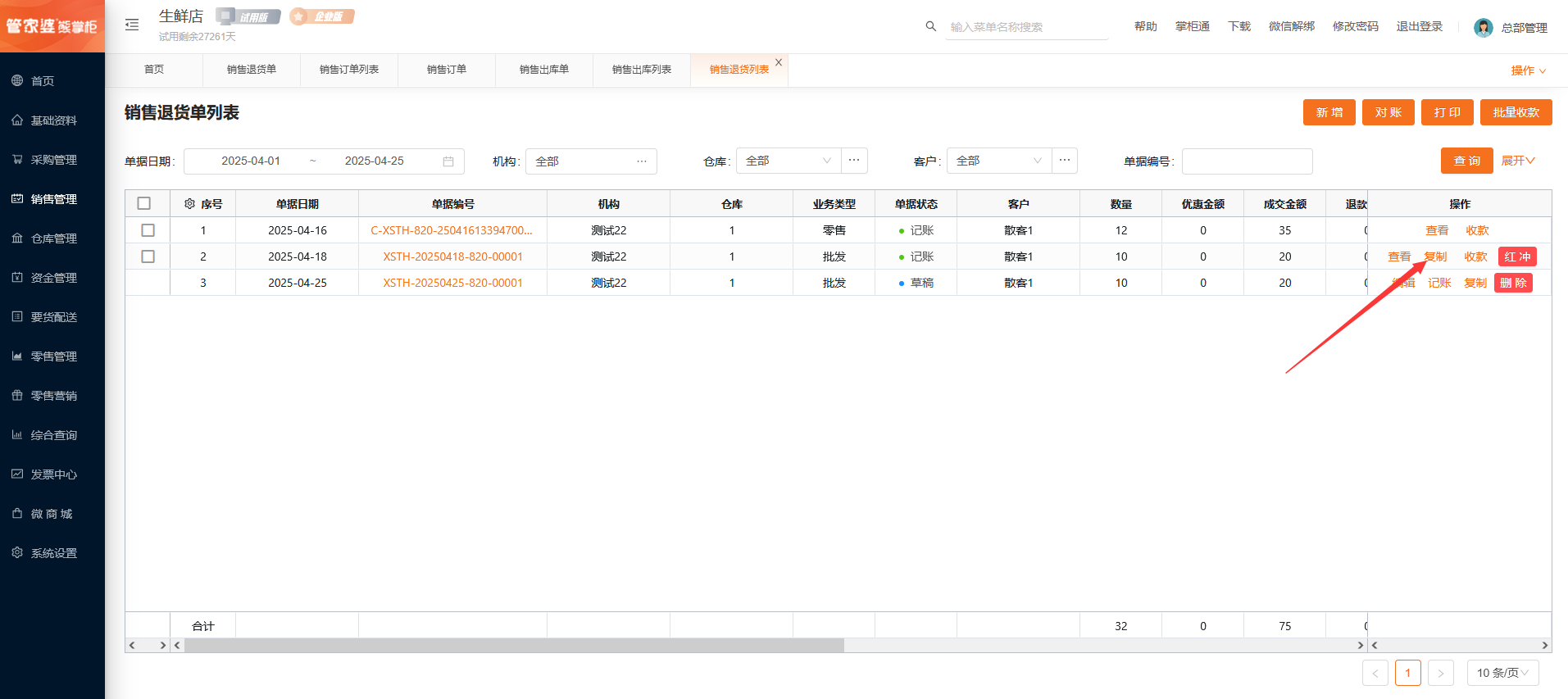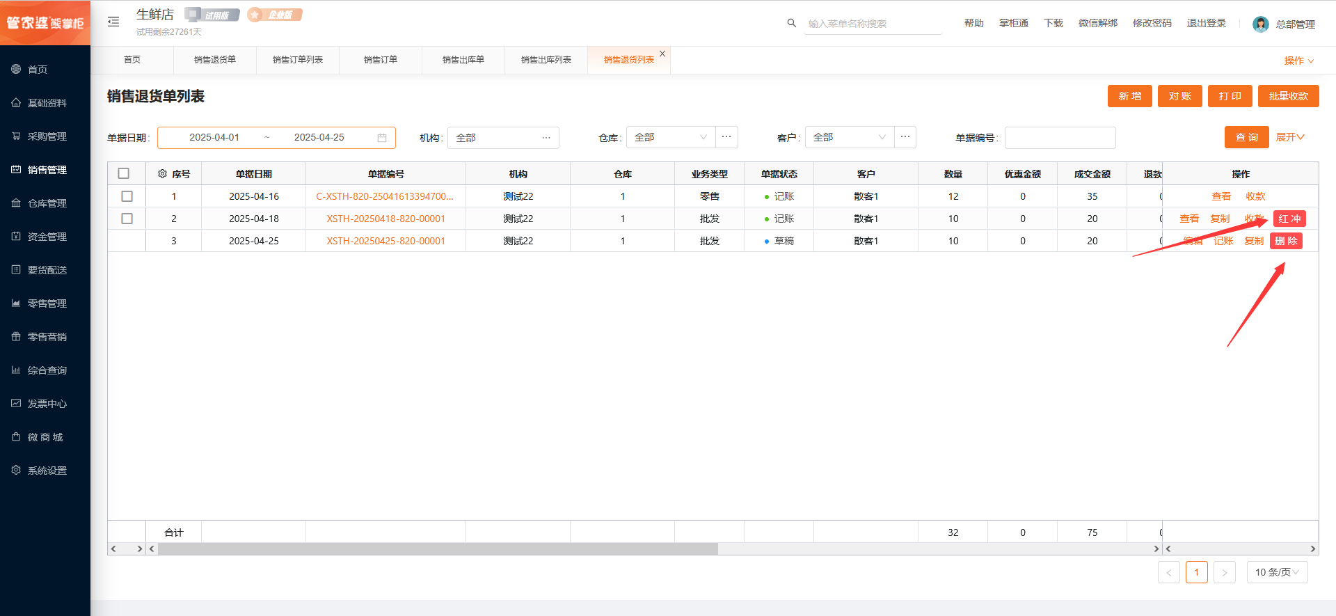 选择单据点击对账后,单据变成已对账状态,在做收款单时,不支持调取已对账的销售退货单。