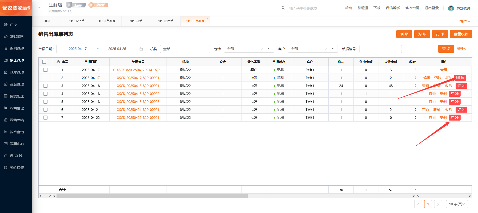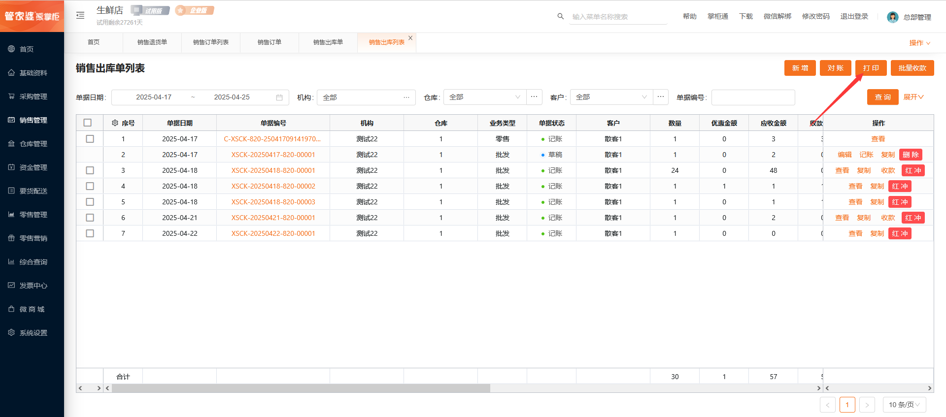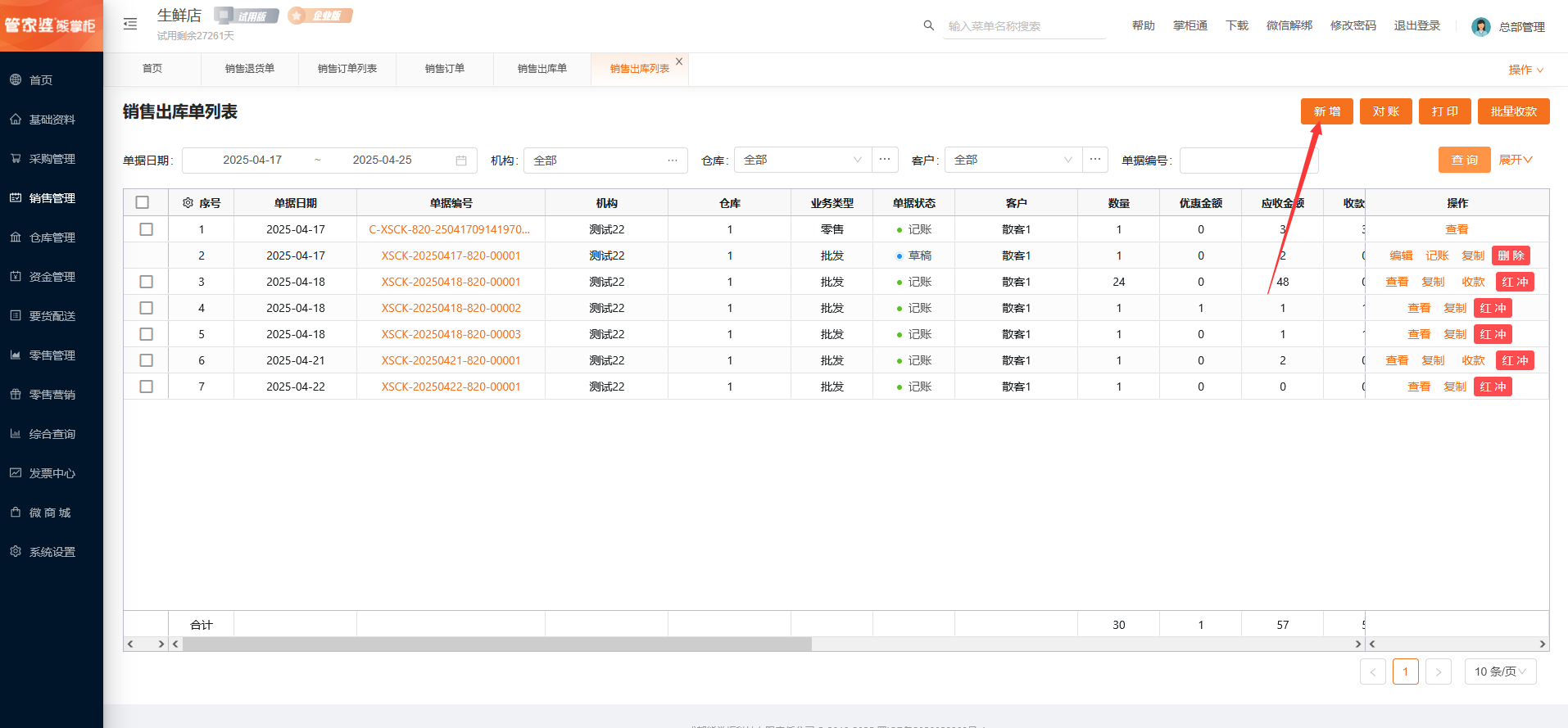 选择单据,点击批量收款,将根据【机构+客户+收款单日期】可能会生成多张收款单。