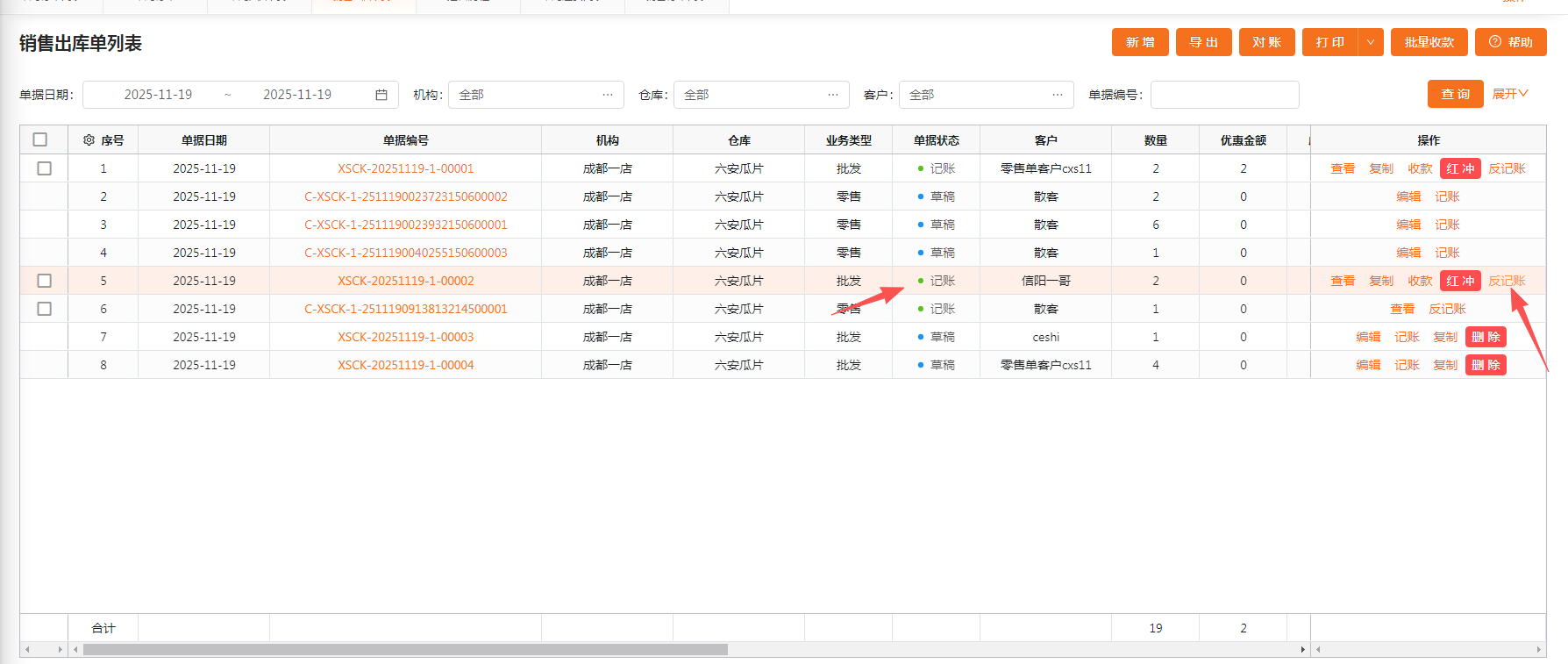 8、已记账销售出库单的修改和删除