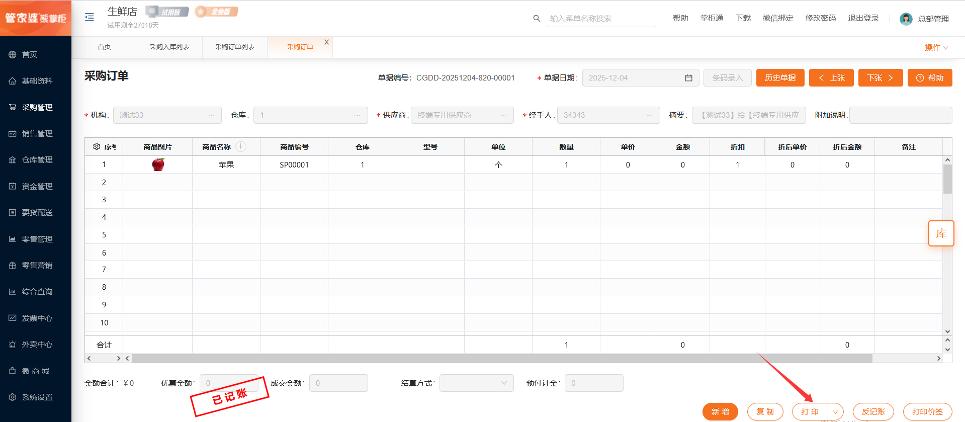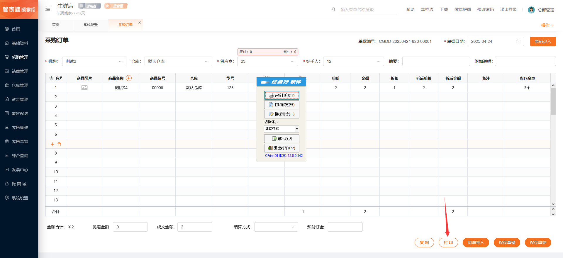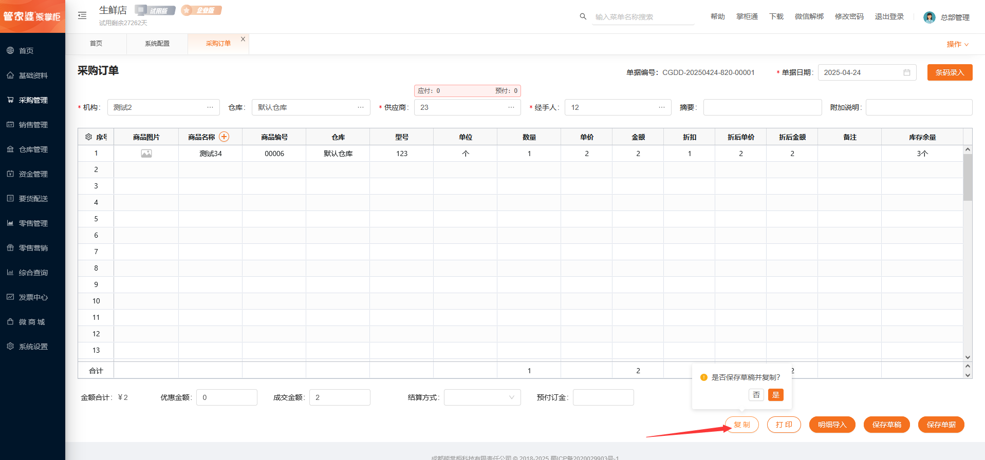 若在总部视角创建单据,则需要选择对应的采购机构、仓库和供应商;若在门店视角创建单据,则机构默认为当前门店不可选择,需要选择对应的仓库和供应商。