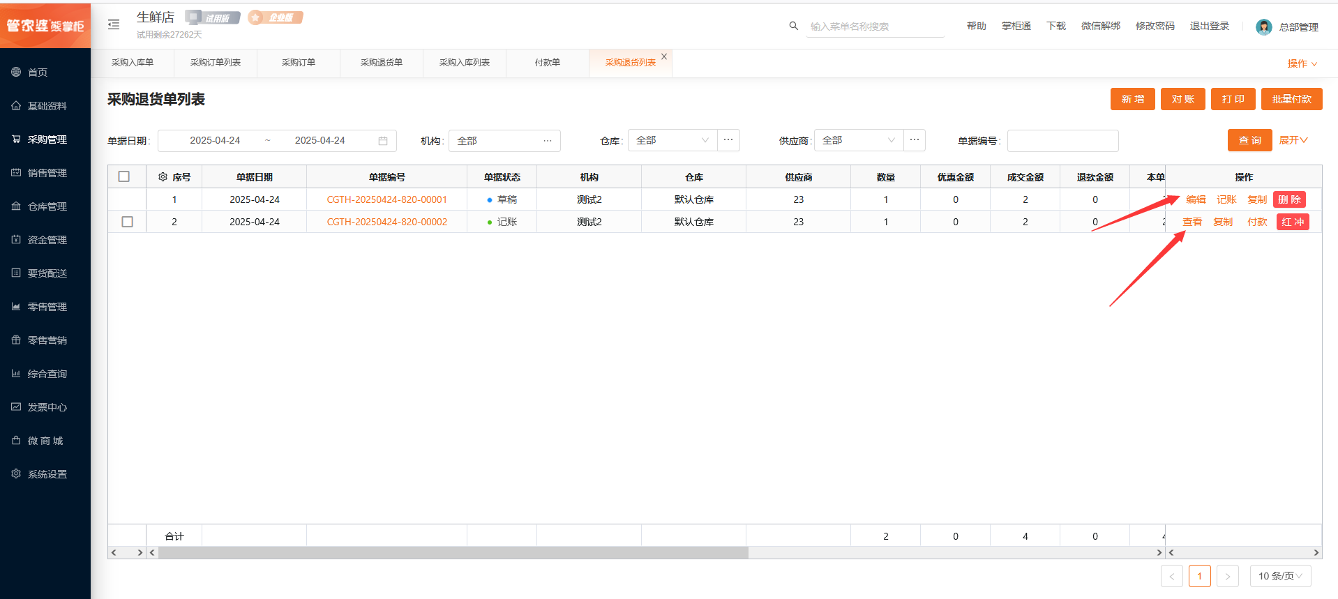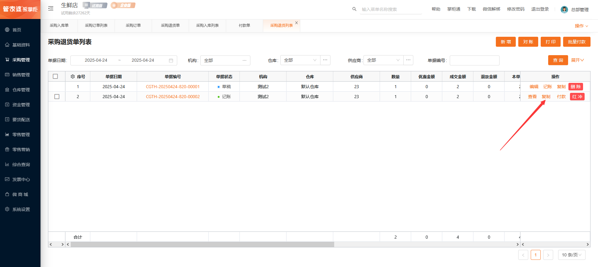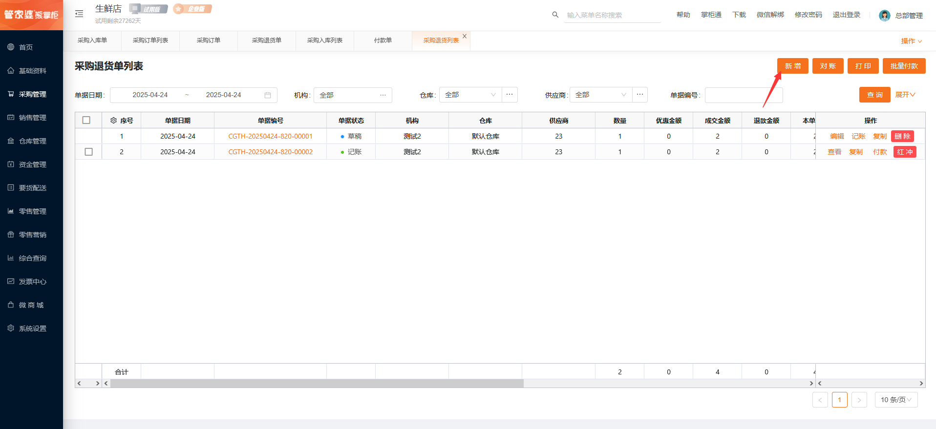 选择单据,点击批量付款,将根据【机构+供应商+付款单日期】可能会生成多张付款单。