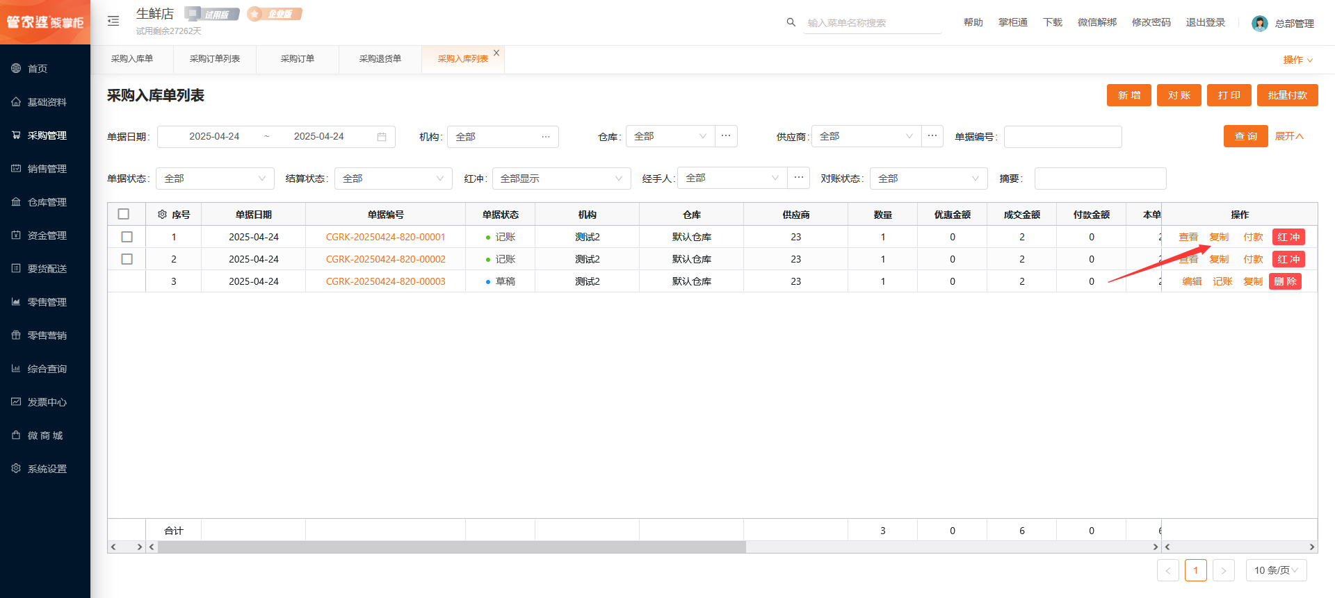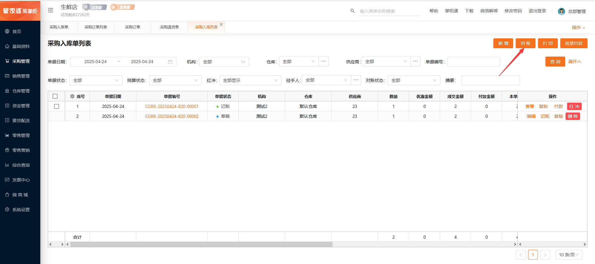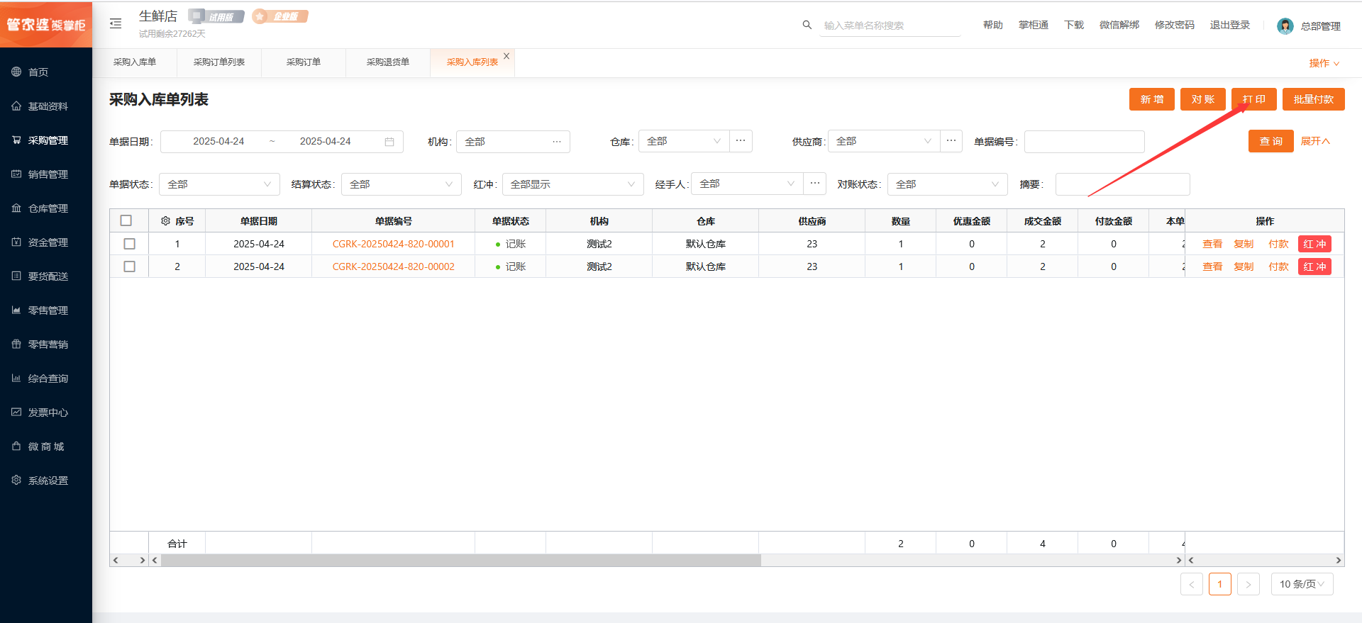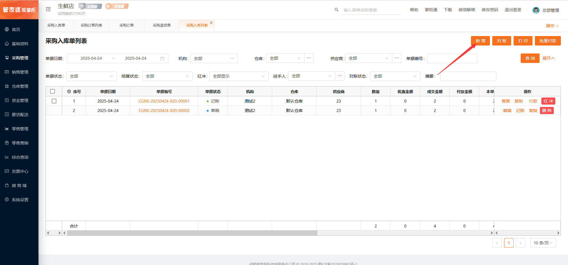 采购入库单列表