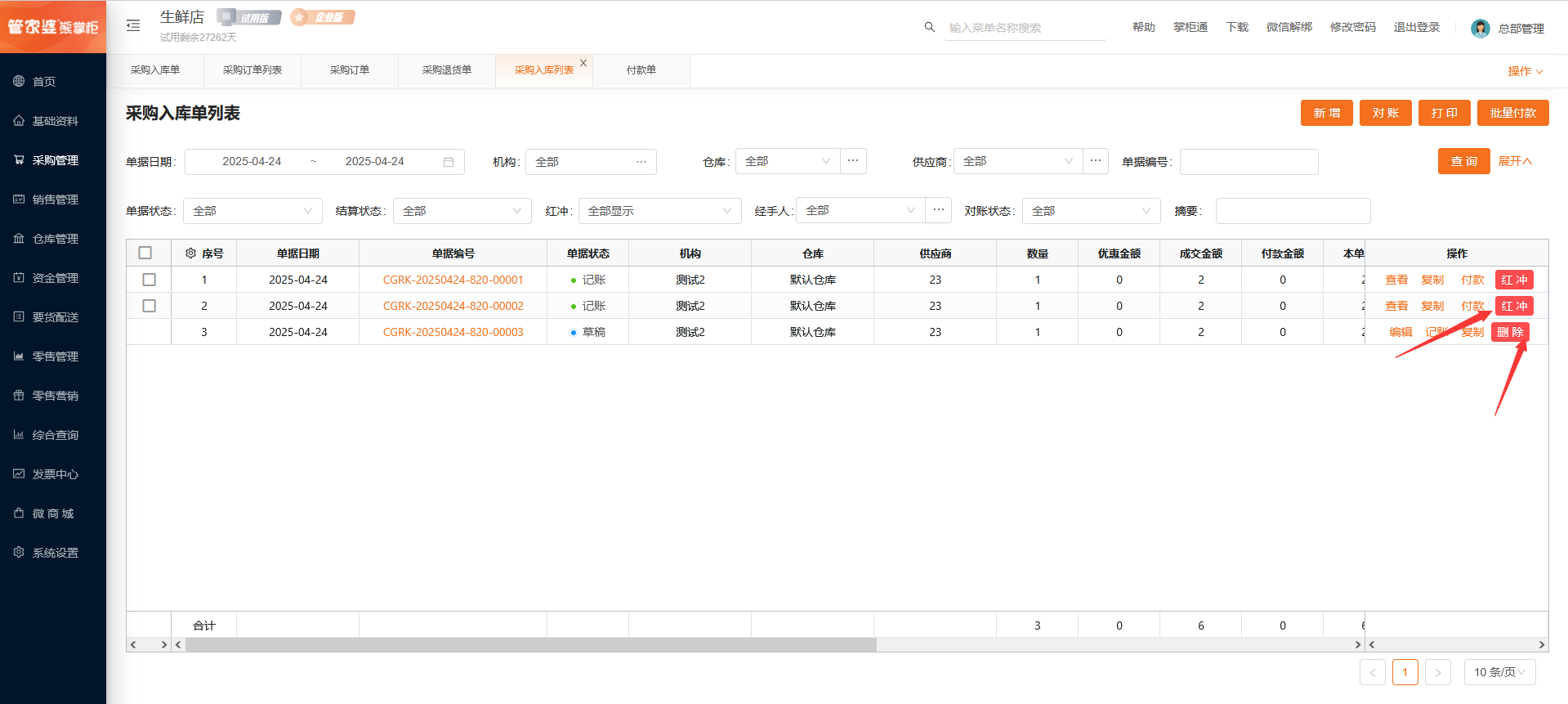 8、红冲/删除