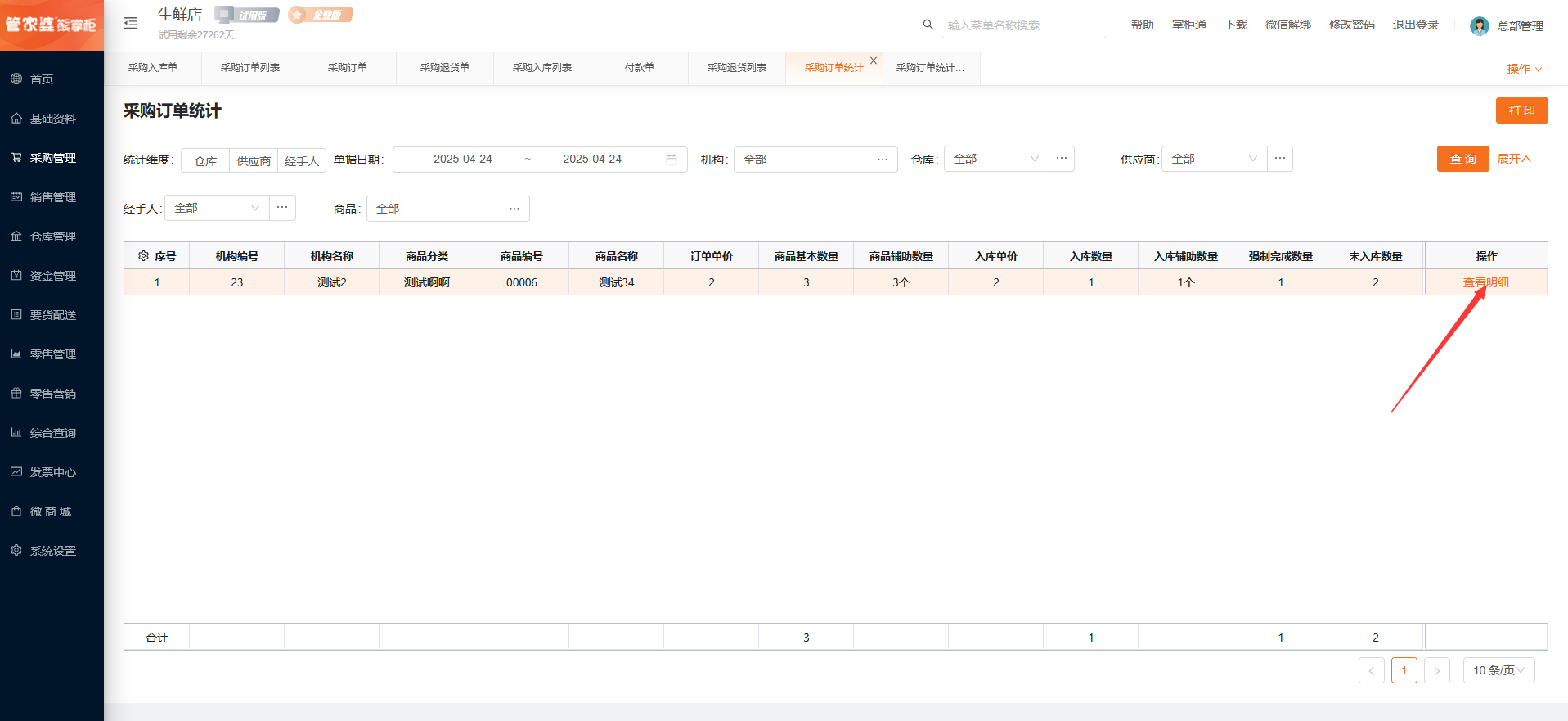 点击查看明细,可查看该商品做采购订单的明细。