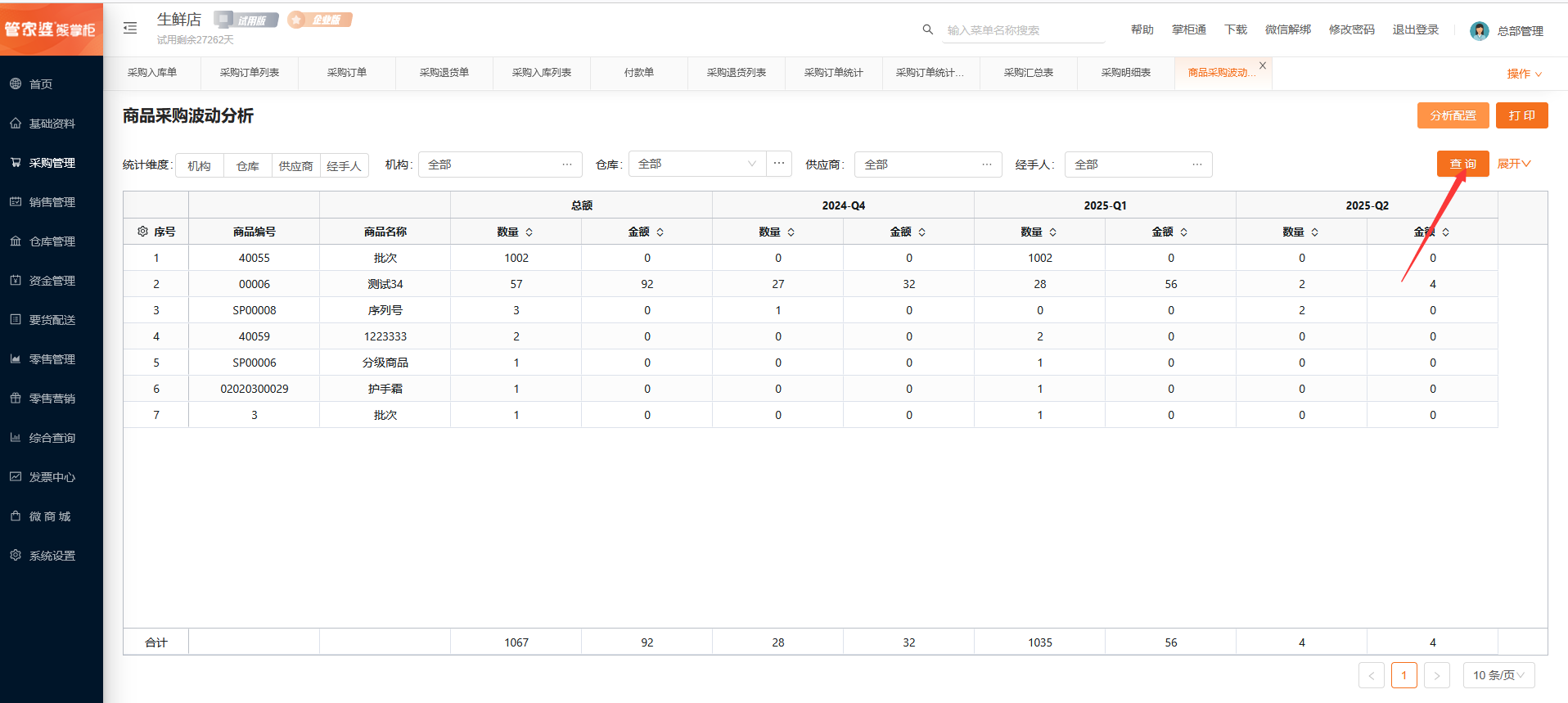 设置分析类型及时间段,设置后,就按设置的类型进行报表显示。