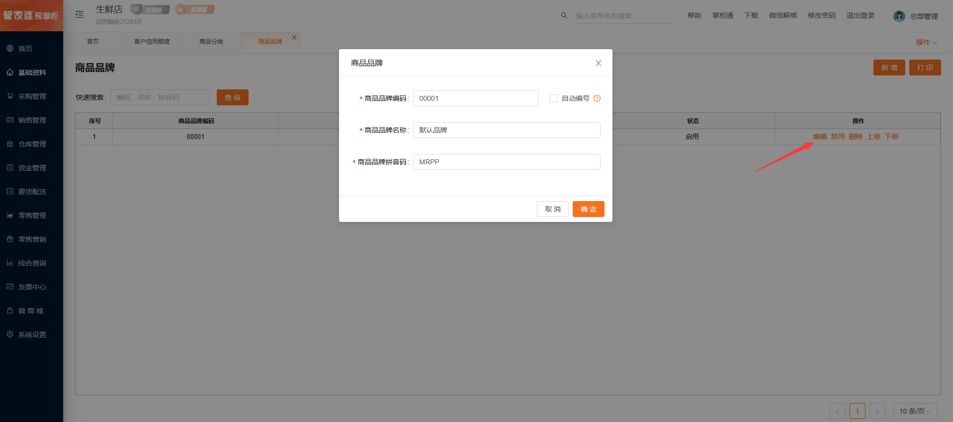 对已有的商品品牌进行修改。