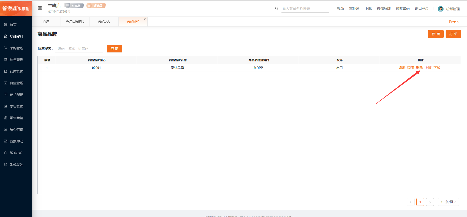 没有使用的品牌可以删除。