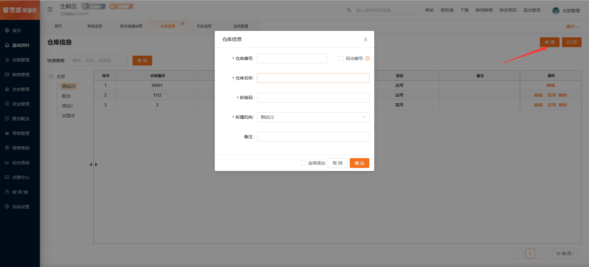 青春版和企业版支持多仓库,如页面没有新增按钮,先在系统设置--系统配置--系统参数里启用多仓库。