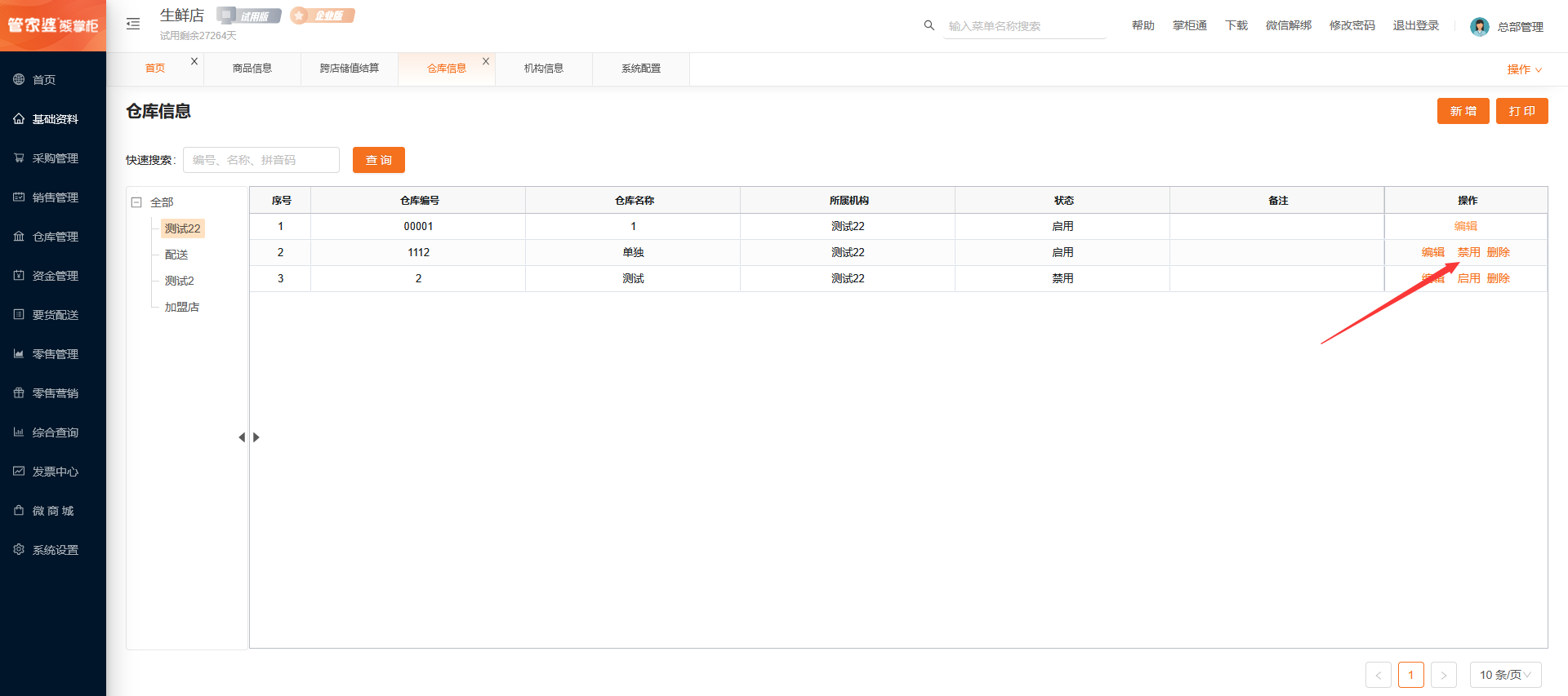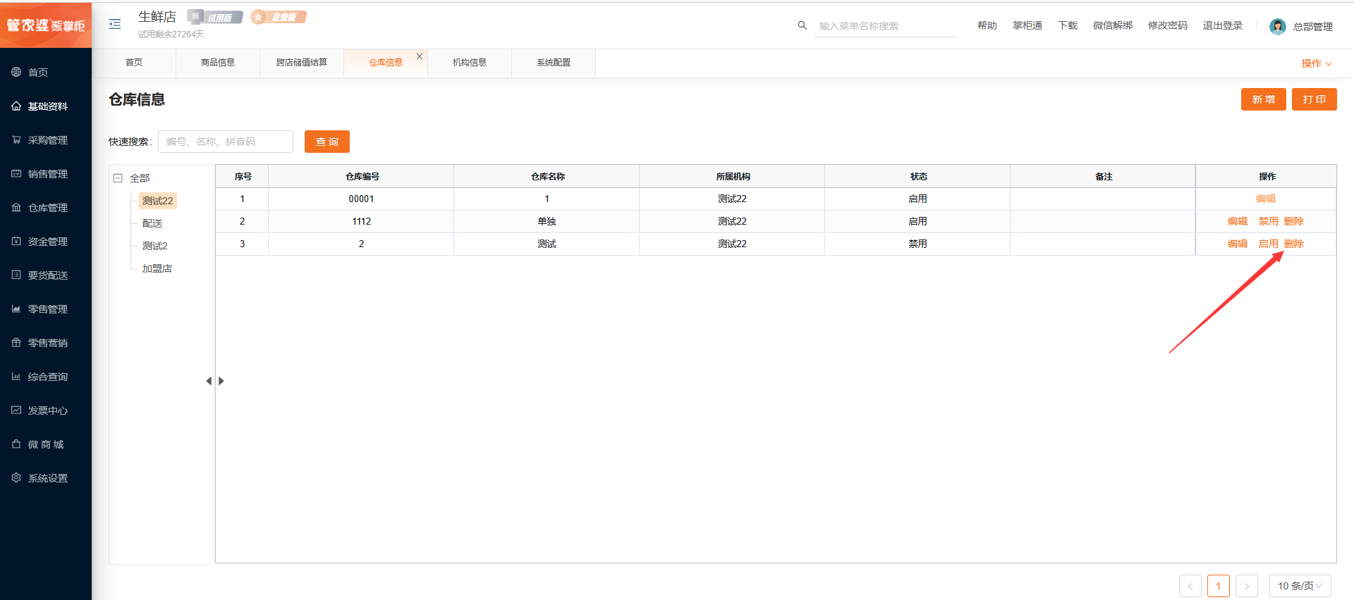 仓库没有使用,可以删除,使用过的,只能禁用。