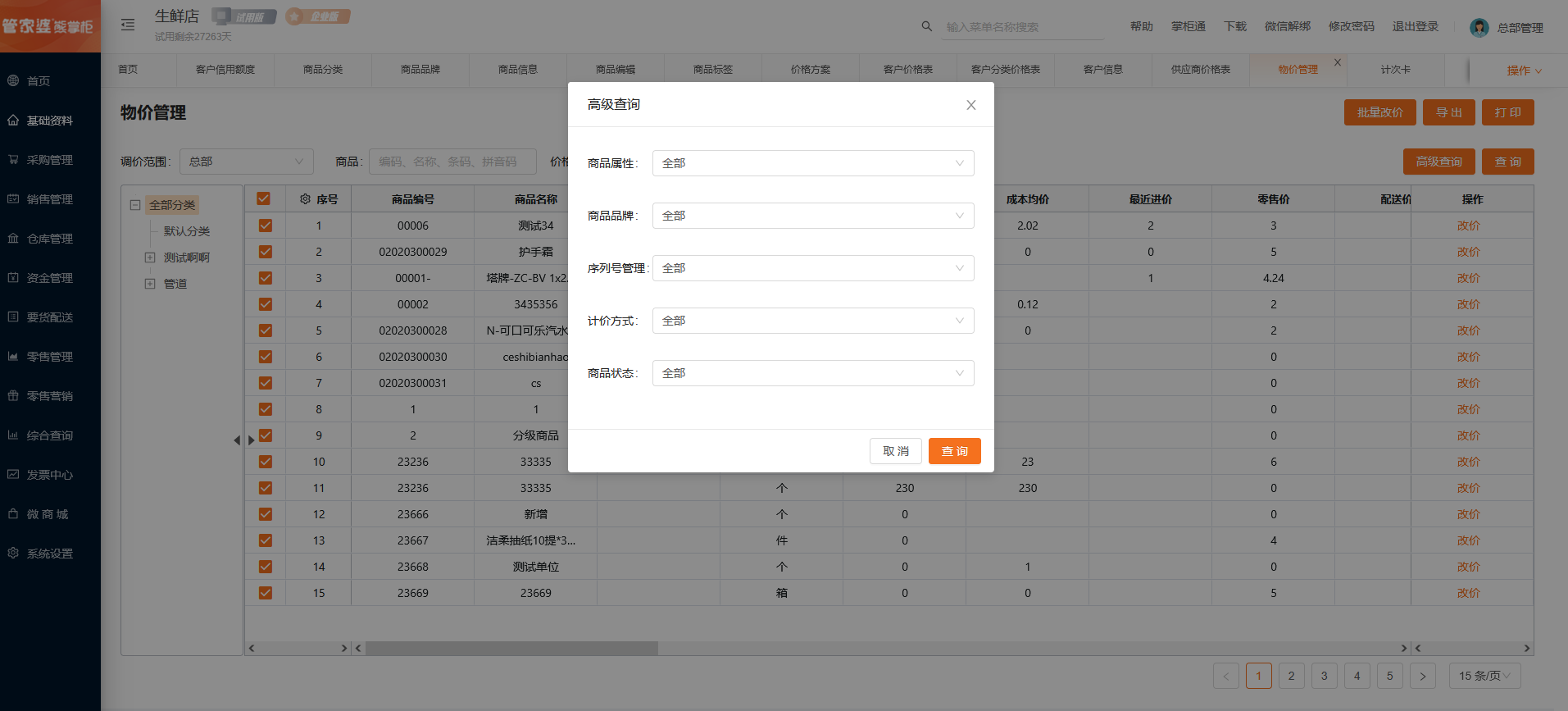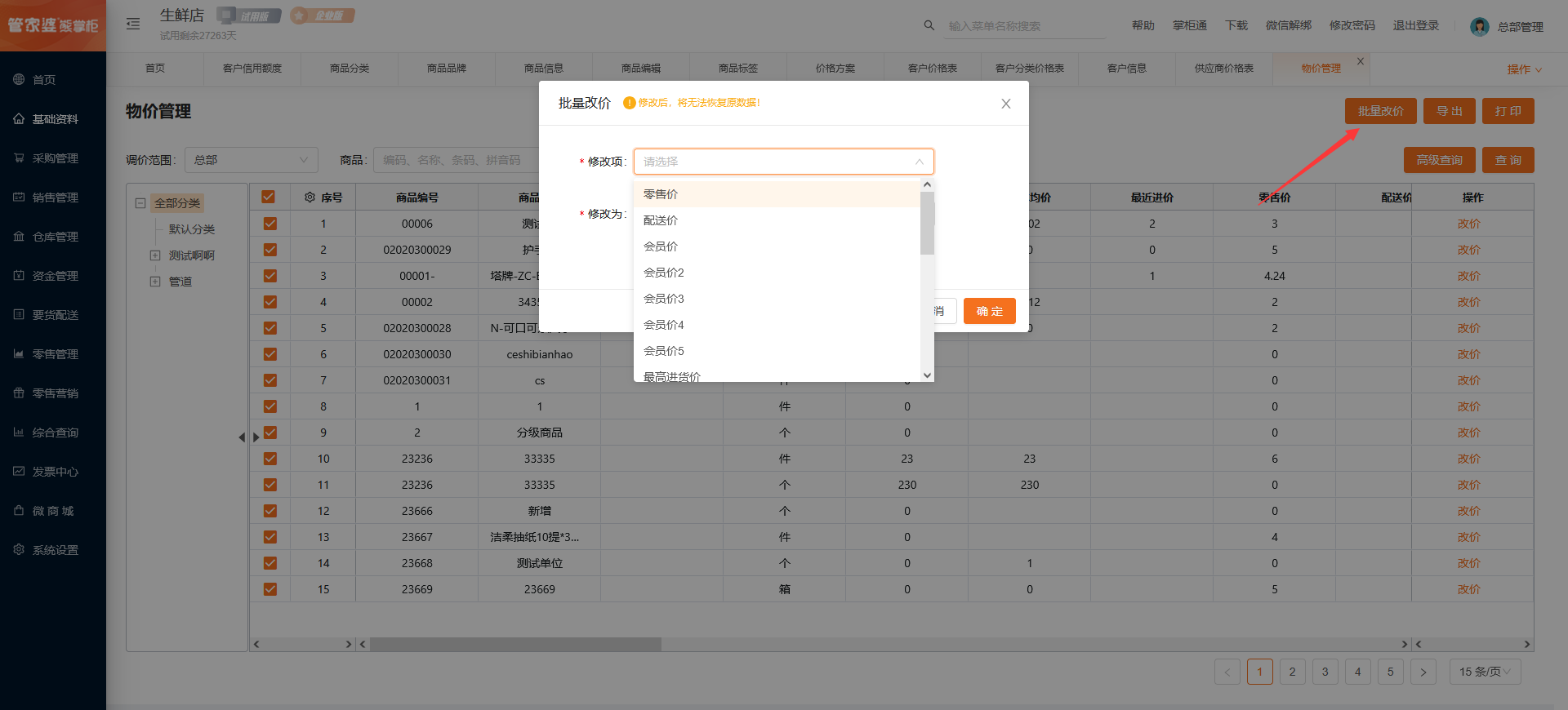 按照调价范围设置的范围,选择商品,操作批量改价。