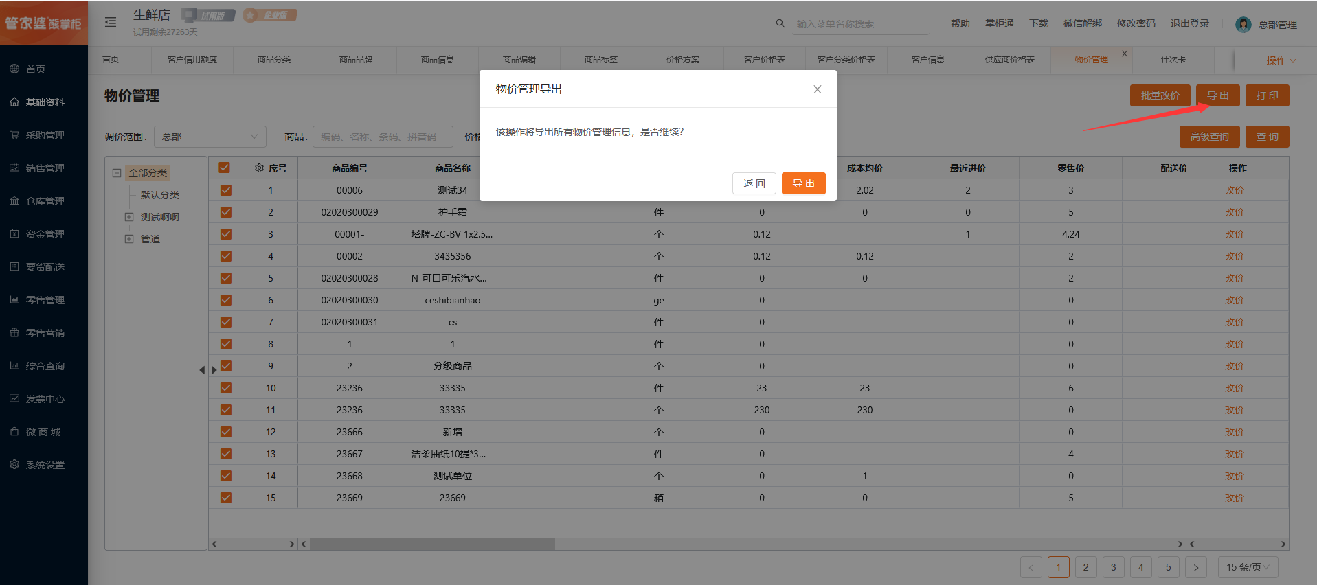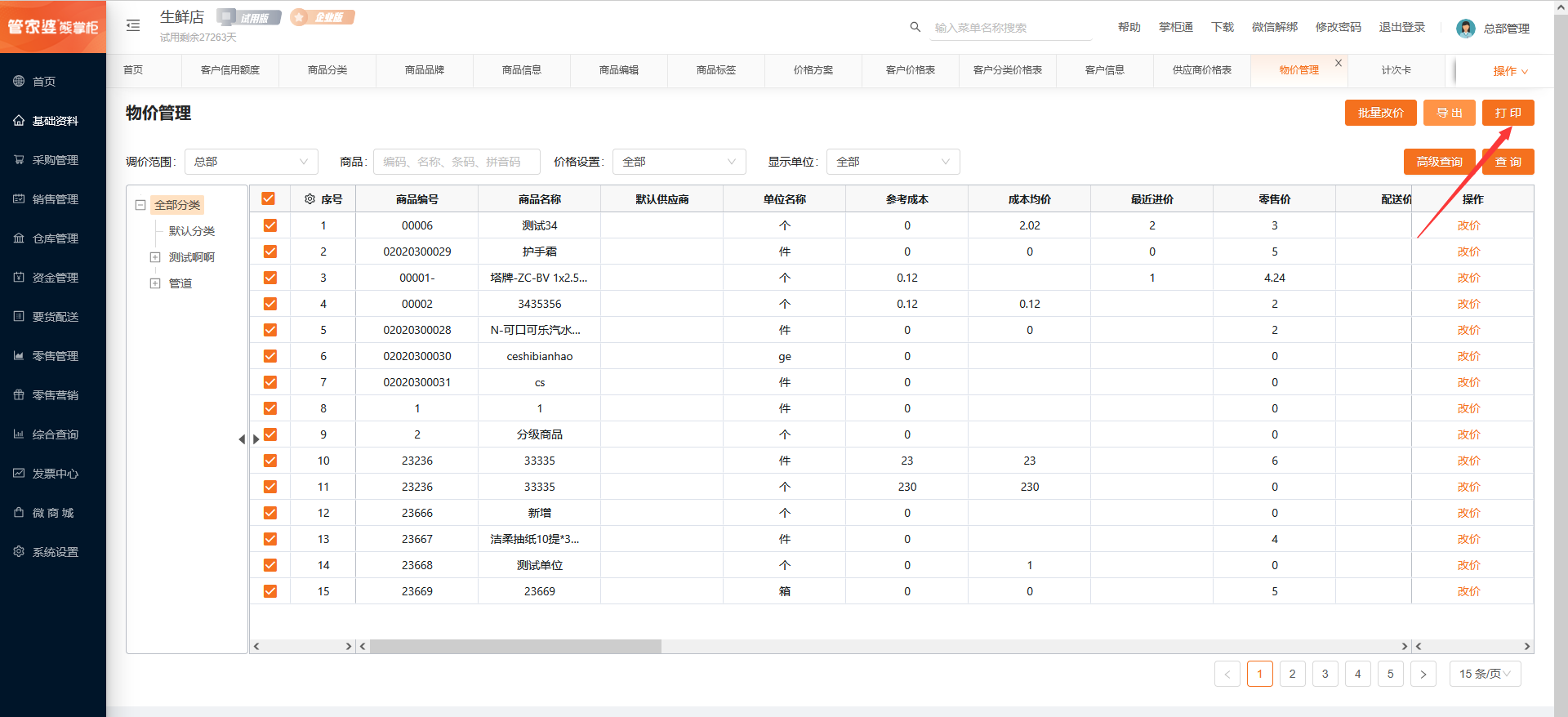 通过打印管理器,打印或导出筛选出来的物价信息。