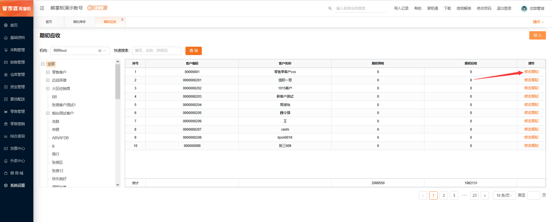 没有使用过的客户可以修改期初应收。