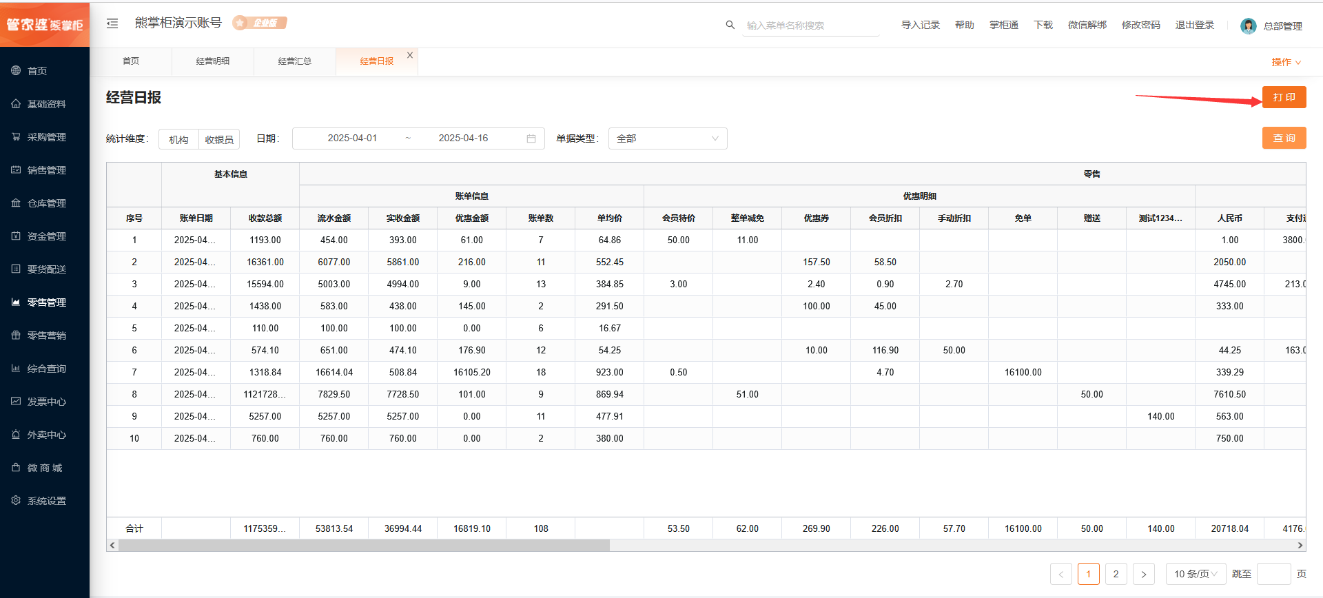 * 零售下的实收金额=零售下的流水金额-零售下的优惠金额;零售下的实收金额=零售下的收入明细之和