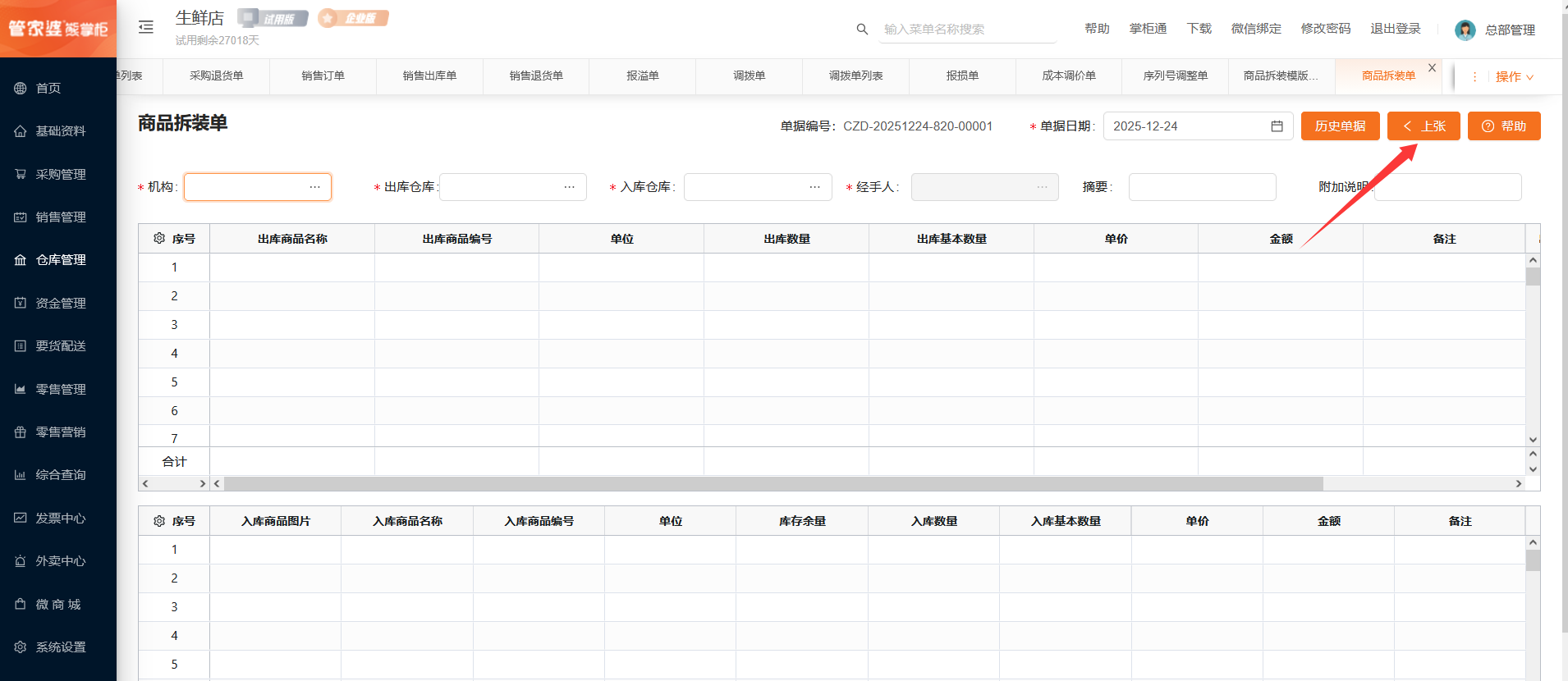 商品拆装单操作如视频所示: